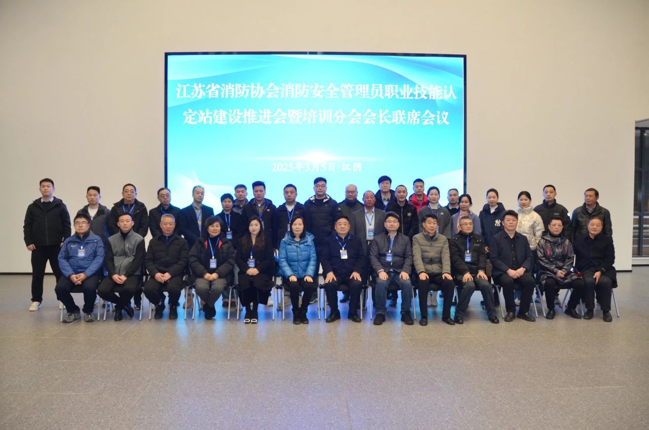 為進一步推動我省消防安全管理員職業技能等級認定站建設提升質量水平,發揮積極作用,進一步提振我省消防職業培訓工作信心決心,提升消防職業培訓工作質效,3月5日,江蘇省消防協會組織召開全省消防安全管理員職業技能認定站建設推進會暨培訓分會會長聯席會議,組織專家初審驗收并組織會議代表參觀消防安全管理員職業技能等級認定(無錫)站建設,開展業務交流,聽取工作意見建議,研究推進工作相關舉措。省消防協會會長蔣正林主持會議并講話,協會秘書長李前林,協會消防培訓分會會長、南京市清大東方消防職業培訓學校校長魏善航,協會專家委員會辦公室主任夏之彬及協會消防培訓分會副會長單位領導和代表、各消防安全管理員職業技能等級認定站建設單位負責人、消防培訓機構代表40余人參加會議,無錫市消防救援支隊及江陰市消防救援大隊有關領導應邀到會指導。