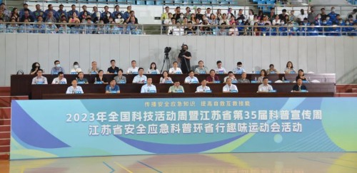 為認真落實習近平總書記關于防災減災救災重要論述,進一步增強全社會對突發事件的防范意識和應對能力,營造人人講安全、個個會應急的良好氛圍,6月8日下午,由省科協、省應急廳、省國動辦、團省委、省衛健委、省住建廳、省紅十字會、省地震局,省氣象學會、省預防醫學會、省煤炭學會、省安全生產科技學會、省燃氣熱力協會、省消防協會共同組織開展的 2023 年全國科技活動周暨江蘇省第 35 屆科普宣傳周——江蘇省安全應急科普環省行趣味運動會活動在南京信息工程大學成功舉辦。南京信息工程大學校長李北群、江蘇省地震局一級巡視員劉建達、共青團江蘇省委副書記李曉明、江蘇省氣象局副局長嚴明良、江蘇省科學技術協會二級巡視員嚴道明、江蘇省應急管理廳二級巡視員毛尚會、江蘇省住房和城鄉建設廳二級巡視員高建、江蘇省消防協會副會長葛洪正、副秘書長周學高出席了此次活動。