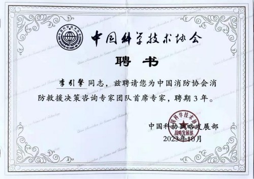 中國(guó)消防協(xié)會(huì)副會(huì)長(zhǎng)、消防救援決策咨詢專家團(tuán)隊(duì)首席專家李引擎、中國(guó)消防協(xié)會(huì)專家委員會(huì)辦公室主任李國(guó)華代表中國(guó)消防協(xié)會(huì)參加了會(huì)議。李引擎代表消防救援決策咨詢專家團(tuán)隊(duì)首席專家領(lǐng)取了中國(guó)科協(xié)的聘書。