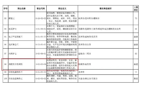 為了更好服務(wù)于用人單位招聘用工和勞動(dòng)者應(yīng)聘求職,同時(shí)為職業(yè)技能培訓(xùn)工作提供數(shù)據(jù)參考,人設(shè)部中國(guó)就業(yè)培訓(xùn)技術(shù)指導(dǎo)中心近期組織102個(gè)定點(diǎn)監(jiān)測(cè)城市公共就業(yè)服務(wù)機(jī)構(gòu),收集匯總2022年第四季度人力資源市場(chǎng)供求關(guān)系較為緊張的招聘、求職需求職業(yè)崗位信息,形成“2022年第四季度全國(guó)招聘大于求職‘最缺工’的100個(gè)職業(yè)排行”,面向社會(huì)公布。其中“消防安全管理員”職業(yè)上榜,排行第98位。這是消防職業(yè)第一次列上全國(guó)“最缺工”的100個(gè)職業(yè)排行!